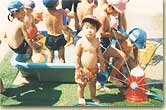 ミーン、ミーンの声と共に本格的な夏がやってきました。保育園では、泥んこ遊び、プ−ル遊び、ボディペインティング、色水遊び、洗濯ごっこ等、夏ならではの楽しい遊びが盛りだくさんです。夏まつり・園庭開放にもドシドシ遊びに来て下さいネッ。