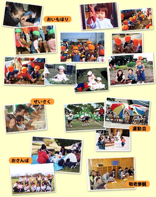秋の保育園は 運動会、おいもほりなど楽しい行事を通じ秋の実りや身近な自然にふれて豊かな感性を育んでいます。園庭開放の日にはみんなも集まってね!! 遊びを通して新しいことを発見しましょう!!
