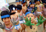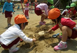 カエルやセミの声が聞こえてくる夏がやってきました。園庭では、砂遊びや水あそび、どろんこあそびの裸んぼうがいっぱいです。夏まつりなどのイベントもあります。是非遊びに来てください。